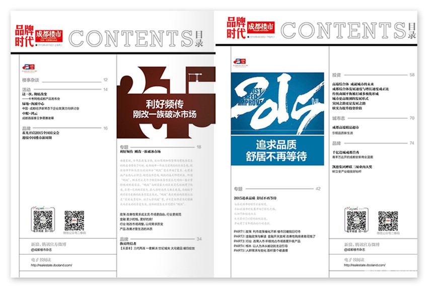 《成都樓市》雜志秉承客觀、公正、專業的服務原則,結合成都市房地產交易中心交易數據分析,為購房者提供近期的樓市行情報道。并以多方位的樓盤檢索、全景式購房地圖、客觀專業的樓盤點評和超大篇幅的樓盤個案信息幫助購房者輕松完成購房初選。