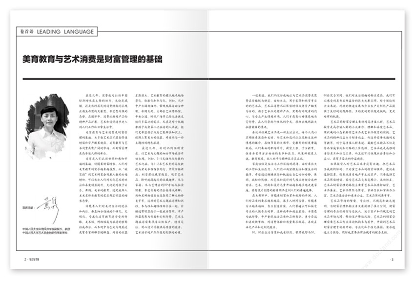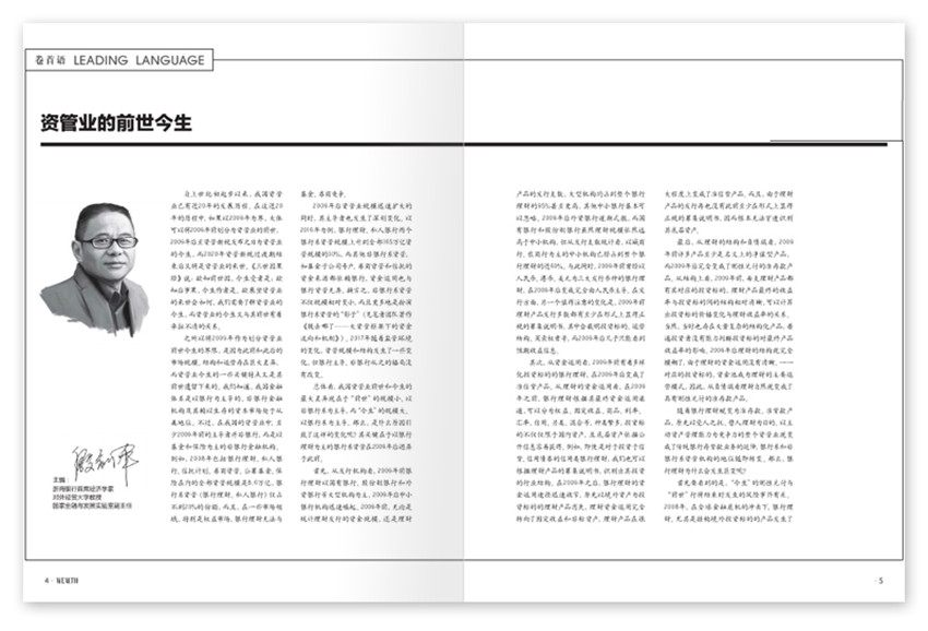 由中國銀行業協會理財業務專業委員會、私人銀行業務專業委員會、中國社科院財富管理中心、中國人民大學信托與基金研究所聯合指導出版,雜志內容主要定位財富管理、高品生活和人文關懷。聚焦實時財富管理熱點及意見,由國內著名的經濟學家從專業角度解讀事件本質。