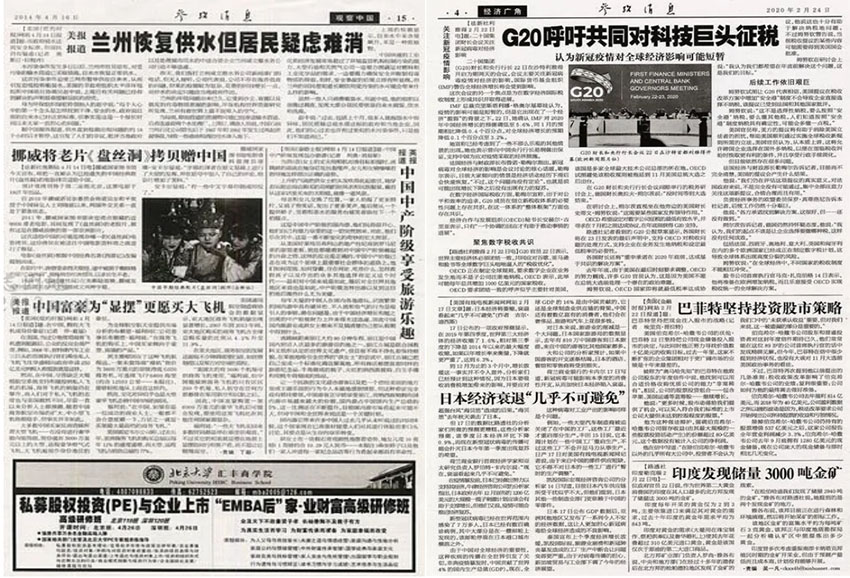 《參考消息》不僅是國內大量心水政、經、文、科、法等新聞領域的重要來源之一,也是國內唯一的指標性國際期刊。它從全球及時跟蹤和報道重要的國際新聞事件,可以讓讀者客觀地了解整個世界的發展和變化趨勢,為大家的觀點、思考和抉擇提供支持。在報道海外政治經濟動態的同時,也注重對國內經濟社會的報道,對大陸和港澳臺的時局和社會熱點進行深度的報道和分析。