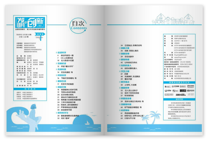 《發(fā)明與創(chuàng)新》雜志創(chuàng)辦于1984年,注重理論聯(lián)系實際,創(chuàng)刊多年來得到了長足發(fā)展,雜志內容充實、版式清新,裝幀精美,深受廣大讀者好評。將科學知識、發(fā)明創(chuàng)新融入學生的生活與學習,展示學生自己的發(fā)明創(chuàng)新作品和有趣的科學小實驗,分享學生和老師的科技創(chuàng)新心得,是同學們激發(fā)探究興趣、體會發(fā)明樂趣、開發(fā)創(chuàng)新潛能的良師益友。