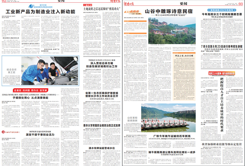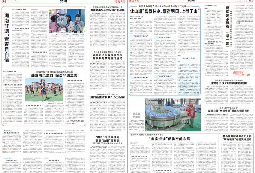 該報注重新聞報道的廣度和深度,對周邊和全國重大事件有深入報道,并為湖南人民提供更加全面的新聞和信息。除了政治和社會新聞外,該報還刊登該省的經濟、文化信息和歷史事件等。同時該報還創設了一些專欄,包括“政治視野”、“經濟觀察”、“文化背景”以及“體育”等專欄,以實現新聞全面化、細節化和分層化。