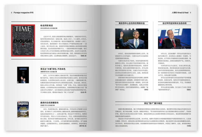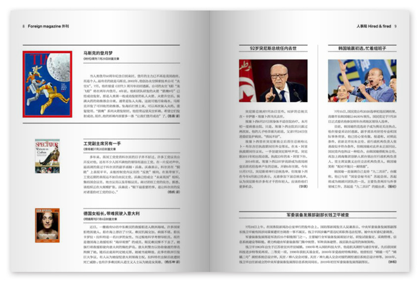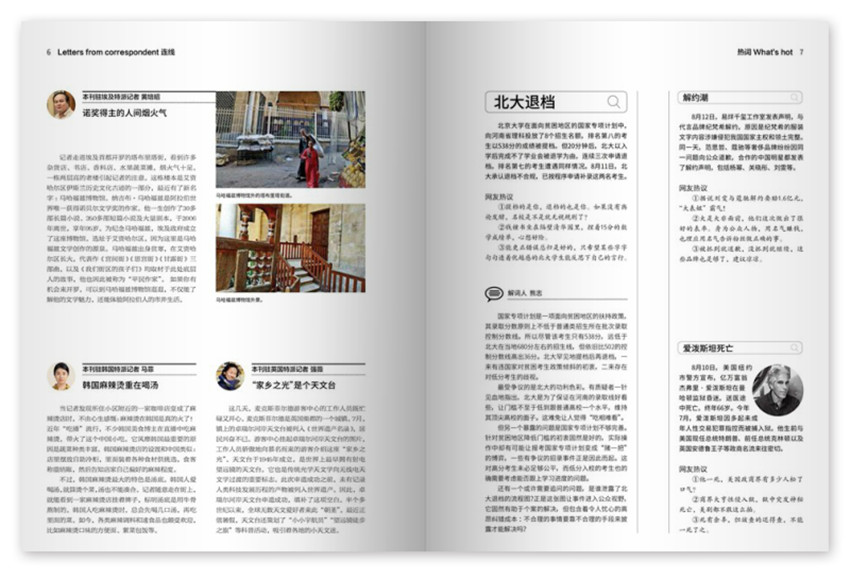 《環球人物》雜志創辦于1946年,注重理論聯系實際,創刊多年來得到了長足發展,雜志內容充實、版式清新,裝幀精美,深受廣大讀者好評。非常有全球視野的一本雜志,里面“深談”就是深度人物訪談,對于成功或者近期熱點人物,會有一個細致深入的采訪與報道,非常有借鑒和參考價值。