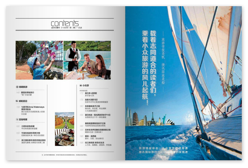 一本專門為旅游愛好者準備的旅游信息雜志,在這里,您可以找到讓你心動的旅游目的地,也可以發(fā)現(xiàn)適合自己的旅游方式,同樣,您還可以為家人選擇一個充滿樂趣的度假產(chǎn)品,緊抓“旅游”與“信息”兩大主題,針對讀者對旅游度假產(chǎn)品的實際需求,將可讀性、指導性、可操作行、服務性融為一體。
