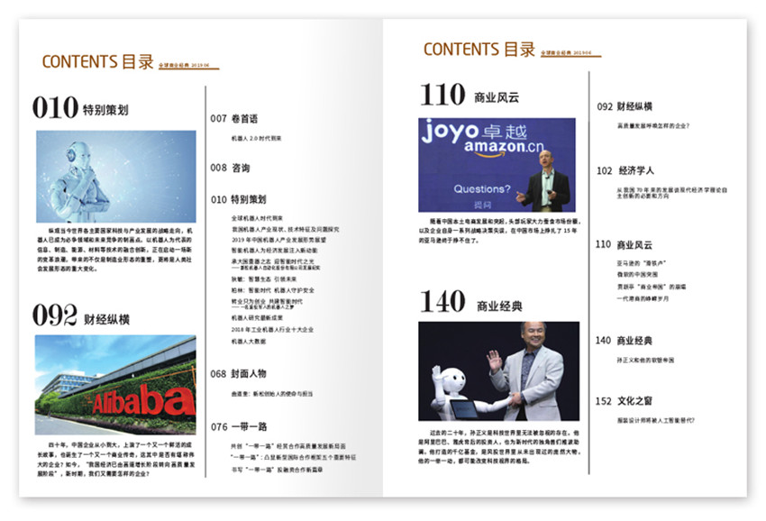 《全球商業經典》雜志分為天下、封面、世間、經典、人文、趨勢、生活等七大版塊,天下匯聚全球資訊與精英觀點,封面提供戰略與趨勢的深度報道,世間通過審視個人命運折射大歷史,經典則是對商業模式與典型案例的全景剖析,人文追尋商業原點的價值基因,趨勢描畫技術與商業的未來,生活倡導美及與優雅有關的一切。