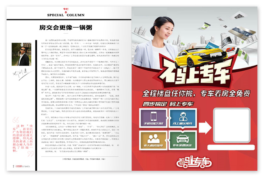 一本新聞性和實用性資訊并舉的房地產類半月刊,關注購房人群,內容涉及重慶市面上各區域及樓市熱點。封面是房產開發商所投放的廣告,封面材料采用亞膜,彰顯大氣質感,設計上都是專業記者精心采寫,如為龍湖兩江新宸的稿件,深受購房者及客戶的青睞。
