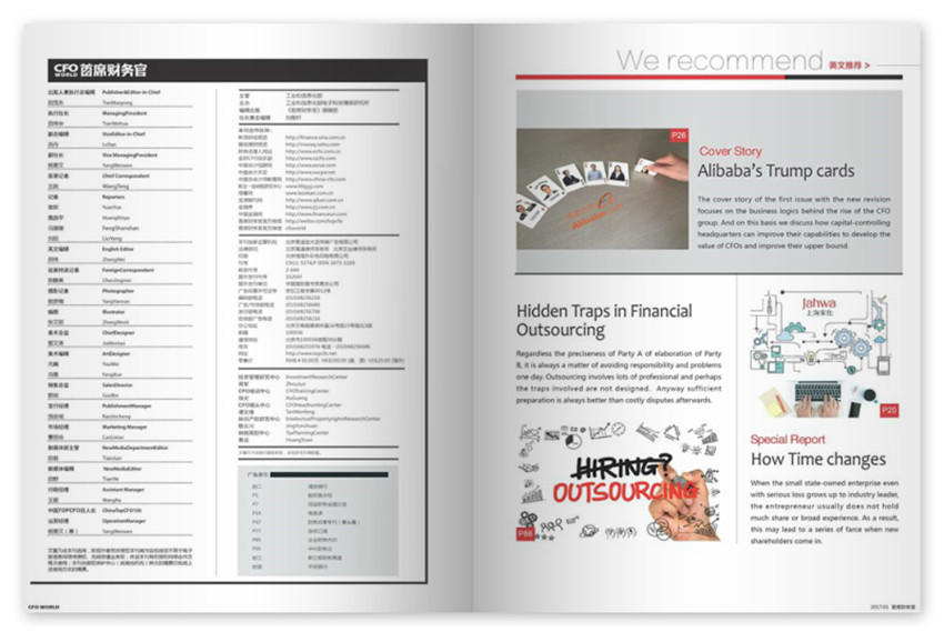《首席財務官》雜志是目前CFO領域內覆蓋為廣泛的、規模較大的、公開出版的大型部級專業期刊,自創立以來深受涵蓋國企、本土及海外上市公司、民營企業和外資企業的CFO們所喜愛,發行量高達16.2萬份,是該領域內發行量和出版規模較大的雜志。