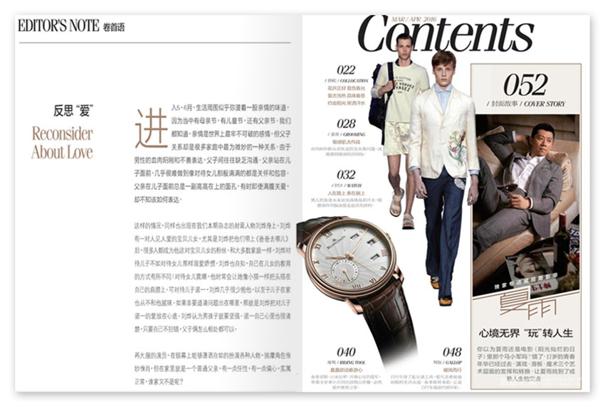 在這個物欲橫流的時代,《紳士生活》不是單純提倡“富而貴”的紳士生活形態的理念價值觀,而是更應引領紳士接近東方上流社會的生活文化,與國際上流社會生活以及文化接軌,展現和詮釋著“穩重大氣、有智慧、懂得生活樂趣”的新東方紳士形象,秉持東西文化交融的審美趣味。