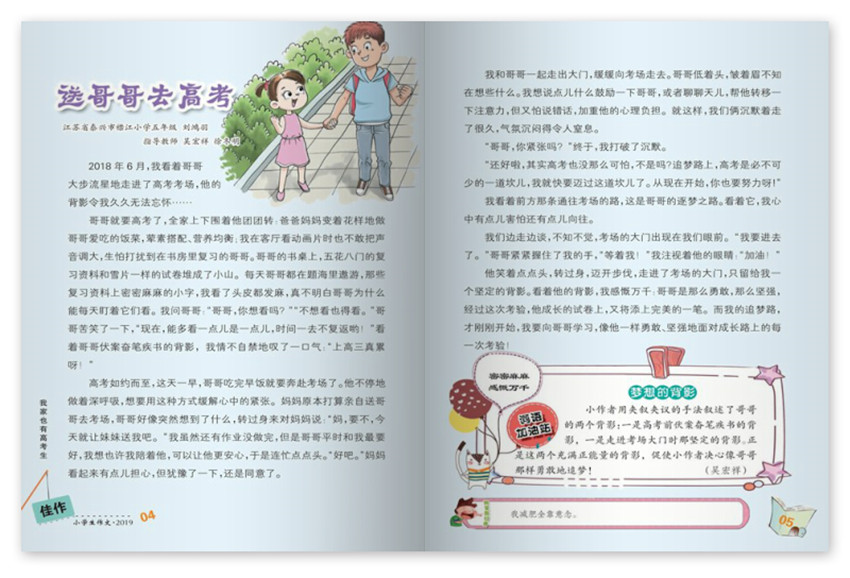《小學(xué)生作文》特邀專家依照語文新課標(biāo)的要求精選適于學(xué)生閱讀的美文進(jìn)行推薦,全方位提升孩子的閱讀品位,同時(shí)在文后寫作練習(xí),引導(dǎo)孩子從讀到寫,活學(xué)活用。