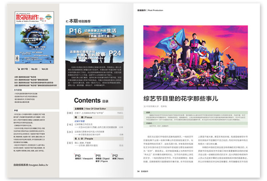貼近讀者、貼近行業、貼近市場,針對性、實用性強,為業界人士所喜聞樂見。專注于影視節目攝制、編輯、后期制作技藝的推廣,及相關設備和系統的選型、構建等,致力推動我國影視制作業整體水平的提高。電影電視媒體已經成為當前為大眾化,具影響力的媒體型式。從好萊塢電影所創造的幻想世界,到電視新聞所關注的現實生活,到鋪天蓋地的電視廣告,無不深刻地影響著我們的世界。