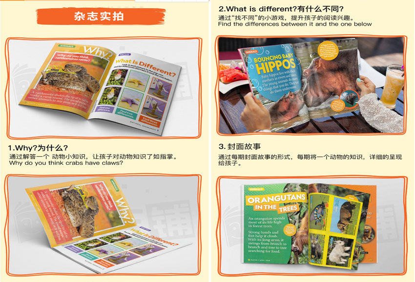該雜志有別于一般兒童文學故事和普通的知識科普雜志,它始終保持著地域性與文化特色,將國家地理文化賦予了它的堅實基礎,每期的主題內容涵蓋世界地理知識、世界文化、生命科學、地球科學、歷史人文等多個領域??堑膬热莅破罩R、優(yōu)美故事、活動游戲等,以簡潔易懂、生動形象的語言,創(chuàng)造適合兒童閱讀、觀察和思考的環(huán)境。