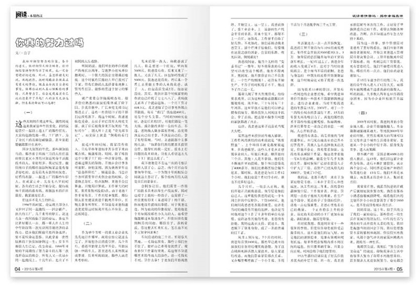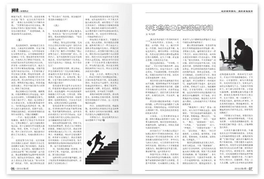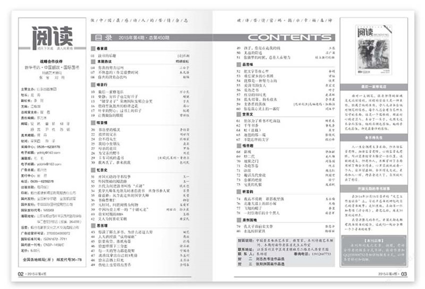 《閱讀》雜志創(chuàng)辦于2005年,注重理論聯(lián)系實(shí)際,創(chuàng)刊多年來得到了長(zhǎng)足發(fā)展,雜志內(nèi)容充實(shí)、版式清新,裝幀精美,深受廣大讀者好評(píng)。