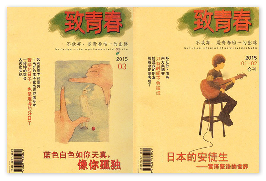 《致青春》是與《讀者》、《格言》、《意林》一起,專(zhuān)門(mén)針對(duì)正在人生成長(zhǎng)關(guān)鍵期的中學(xué)生制作了一本精品雜志,中學(xué)生成長(zhǎng)過(guò)程中面臨的學(xué)習(xí)的困惑,日常生活的趣味,考試作文的疑難,面臨親情的矛盾,朦朧愛(ài)情的憧憬和淺嘗。