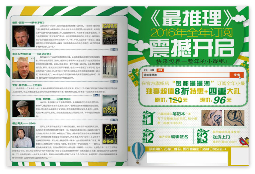 《章回小說·最推理》雜志強調故事復雜性和多樣性,力推原創,集聚了馬伯庸、雷米、君天、老家閣樓、大袖遮天、凜、王稼駿、秦明、軒弦、愛巧克力奶、王珂、水心沙等一大批國內優秀的作者,挑戰思維極限,考驗縝密邏輯!