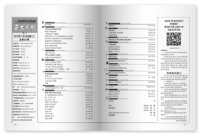 《雜文月刊》每一期都為讀者篩選了優質的雜文文章,對當下的時事和社會熱點進行文人的討論,同時也用或溫和或尖銳或幽默的筆觸表達了理性的思考和感性的認知。