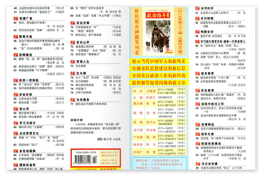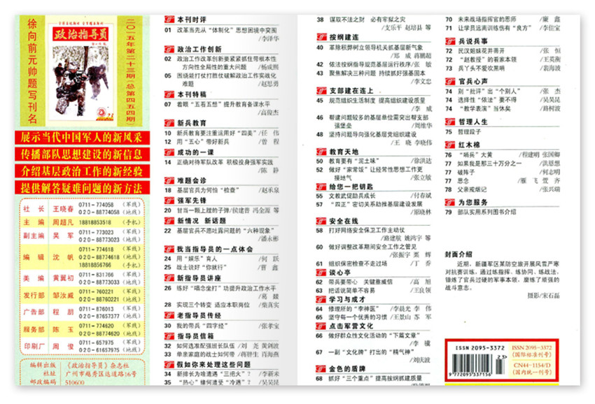 發(fā)行量大,在軍內(nèi)外擁有眾多的讀者,“哪里有部隊(duì),哪里就有《政治指導(dǎo)員》雜志。”實(shí)用性、指導(dǎo)性強(qiáng),是部隊(duì)官兵成長成才的良師益友。